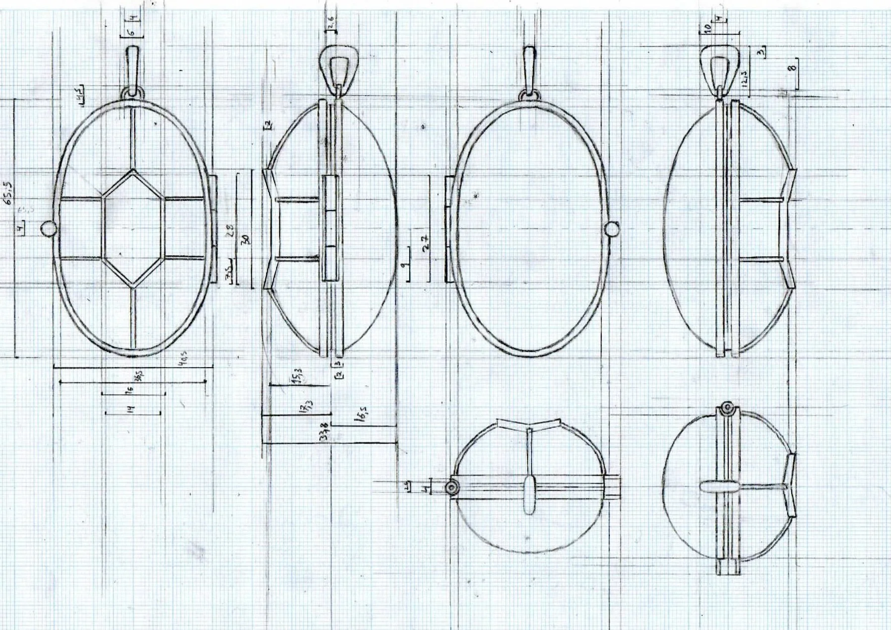 When I made this set of jewelry, I used CAD to create the patterns and to figure out what proportions they needed to have in relation to each other for the 2 halves of the spheres to meet in the correct spot.