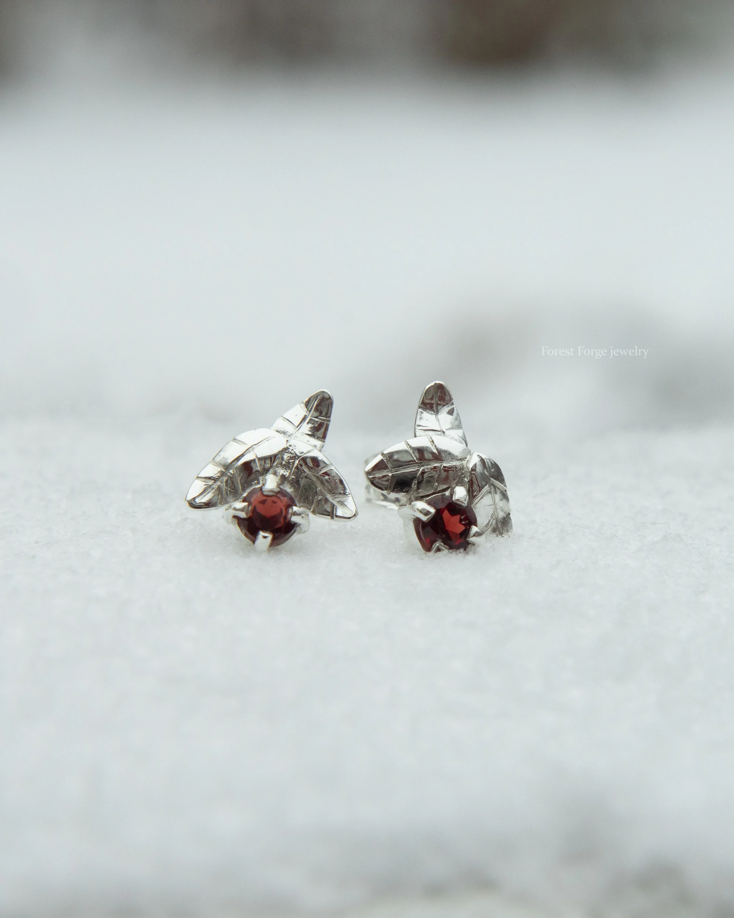 Materials: 925 silver, red garnet earrings “Smultron“ (wild strawberry)