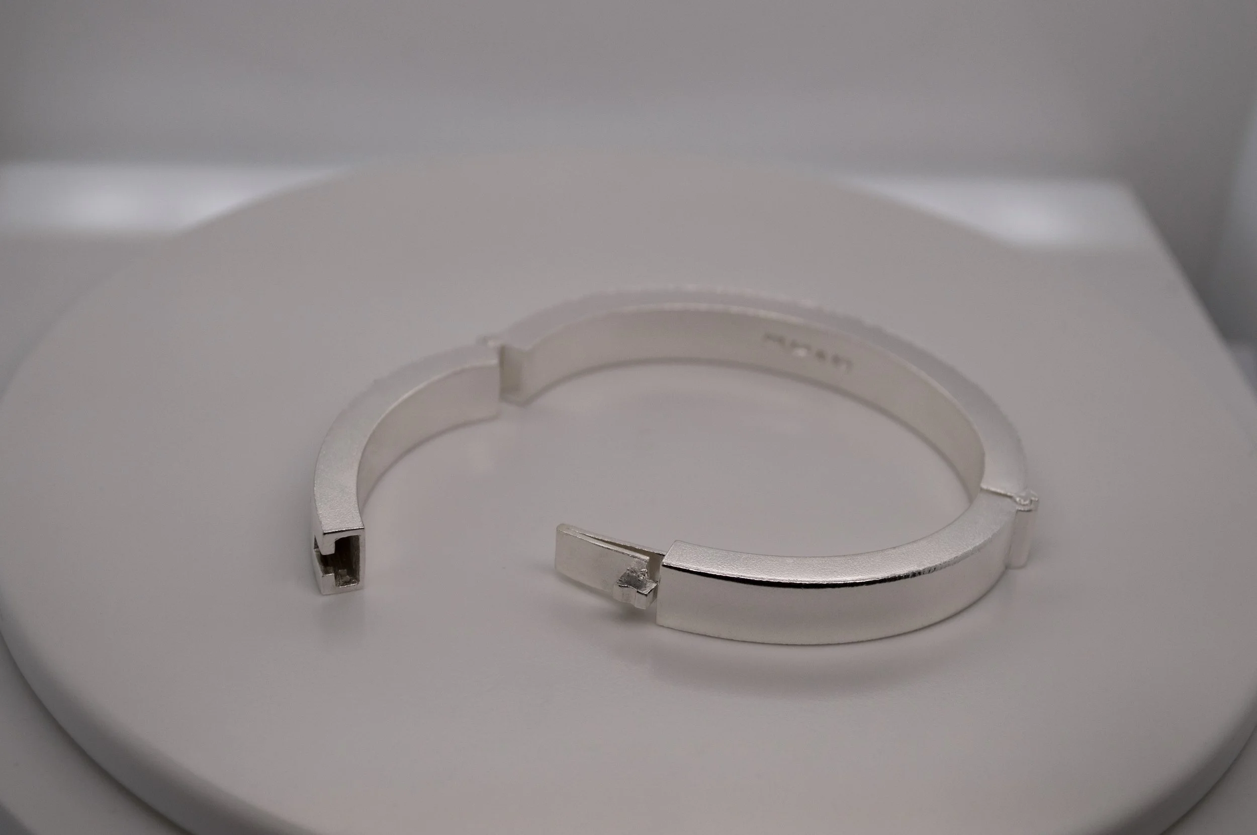 I wanted to challenge myself by placing the lock on top of the bracelet and adding an extra hinge. The hinges rest upon a pipe that acts like a stop, so the bracelet open up in a certain angle. You can learn more about my certification here: